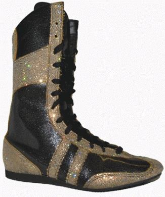 The senior sparkle boxing boots are available in silver sparkle with black trim or black sparkle with silver or gold trims as illustrated.